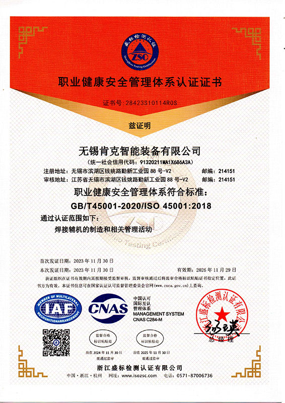 職業(yè)健康安全管理體系認(rèn)證證書